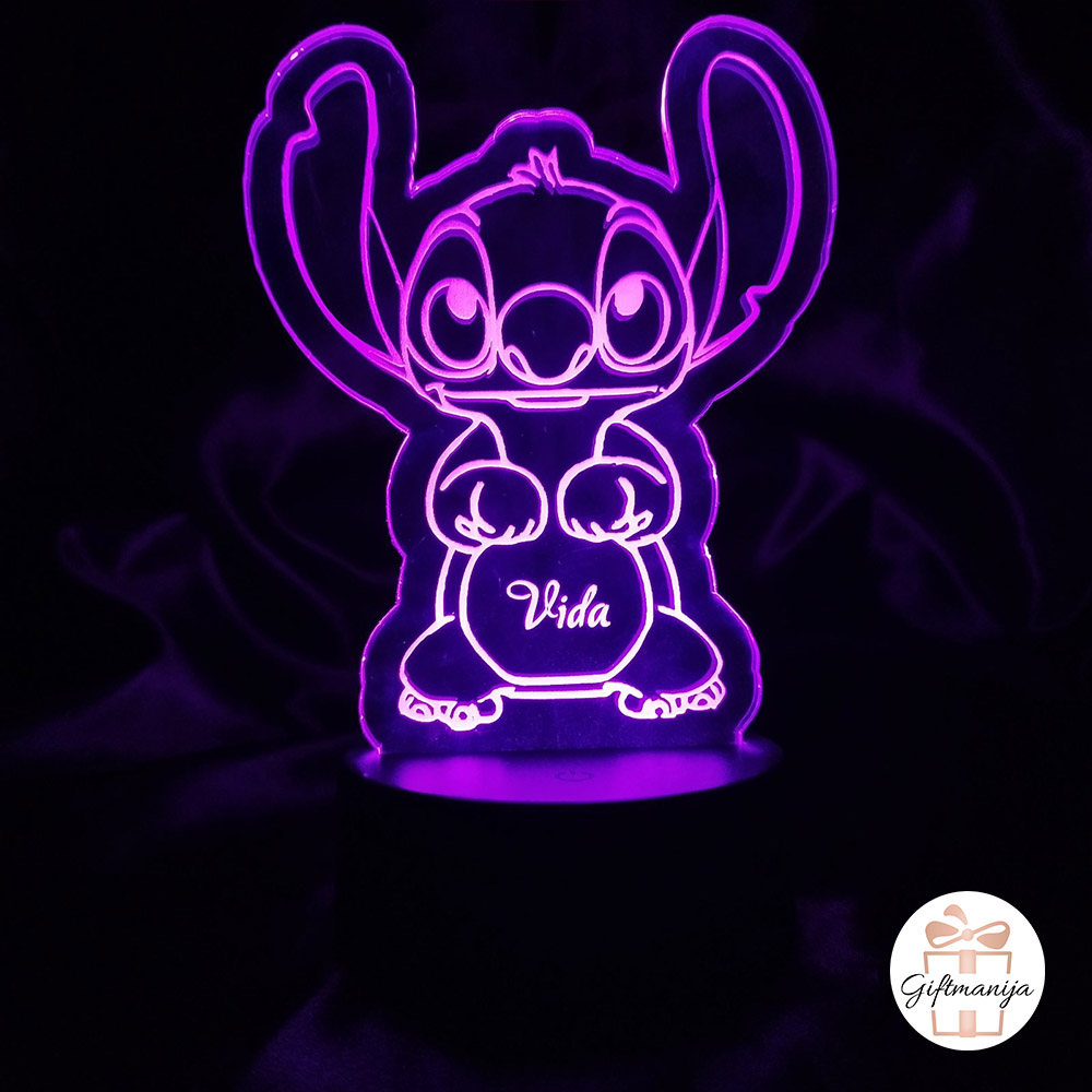 3D LED lampa Stitch s imenom Vida ljubičasto svjetlo; Personalizirana LED lampa Stitch; Lilo i Stitch poklon; noćna lampa za djecu; unikatni pokloni; Giftmanija; lampa s gravurom; poklon za rođendan; dječja soba dekoracija