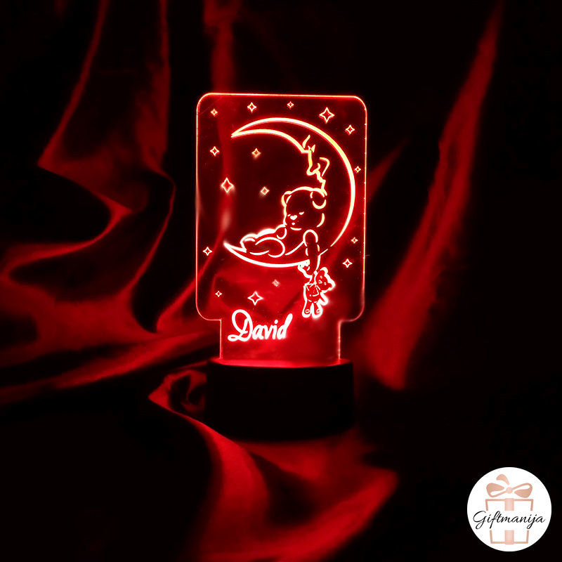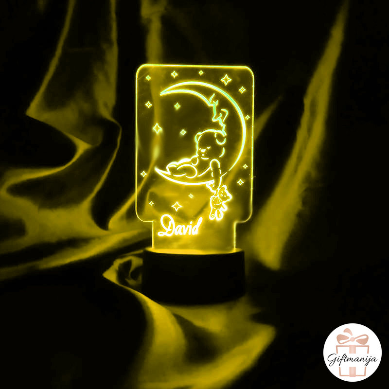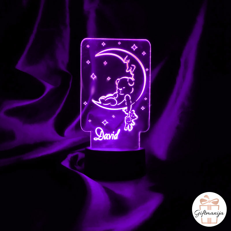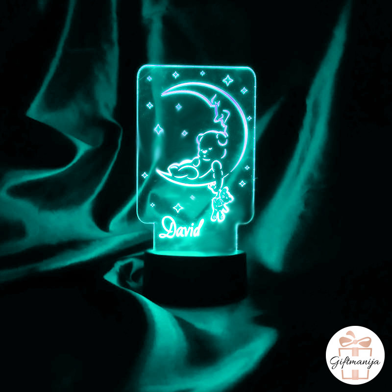 7 boja svjetla: Vaša nova personalizirana lampa medo na mjesecu izmjenjuje prekrasan spektar boja (bijela, žuta, plava, crvena, zelena, tirkizna i ljubičasta).