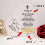 - Tekst 3 (Ime djeteta i datum): Trajno zabilježite ime djeteta i datum krštenja kako bi uspomena bila potpuna.