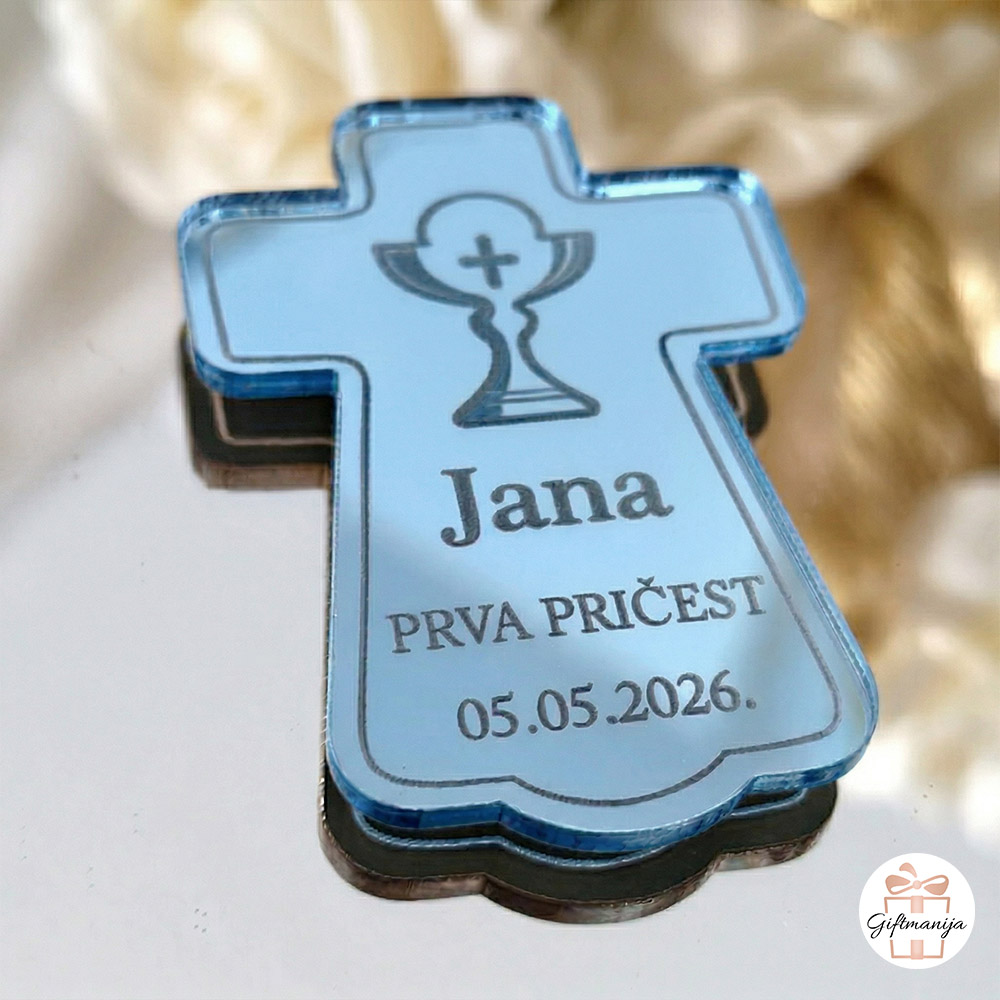 Naručite svoj zrcalni magnet za pričest križ već danas i dodajte notu glamura vašem najljepšem obiteljskom slavlju!